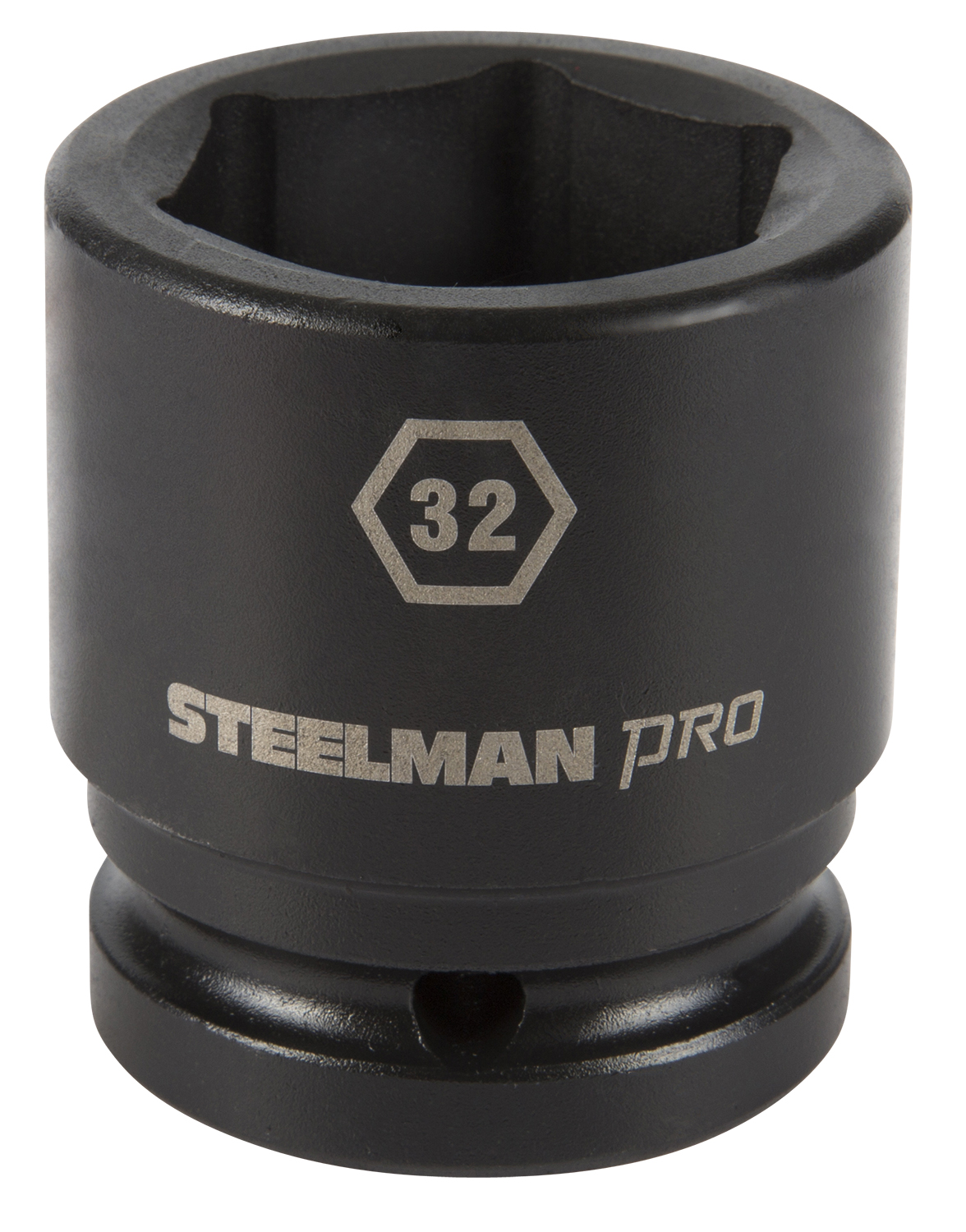 Every mechanic knows that having a reliable set of tools can make your life easier when working on heavy-duty vehicles and equipment. The STEELMAN PRO 79252 3/4-Inch Drive 6-Point 32mm Impact Socket is ideal for use in performing maintenance, repairs and service on large trucks and tractor trailers, farming equipment and tractors, oilfield and construction equipment, and mass transit vehicles. Made from drop forged and heat treated chromoly steel, this socket features a ball detent recess on the 3/4-inch drive end to help hold it securely onto ratchets, air wrenches, adapters, and extensions. The 6-point design grips the sides of fasteners and not the corners, reducing wear and the chance of rounding the fastener. The socket features a rust and corrosion resistant black phosphate protective coating with laser etched size callouts and markings. Rated to withstand up to 150% of ASME torque requirements for impact tools, this socket can handle tough use in any professional shop / garage, home workshop, or on the work site.