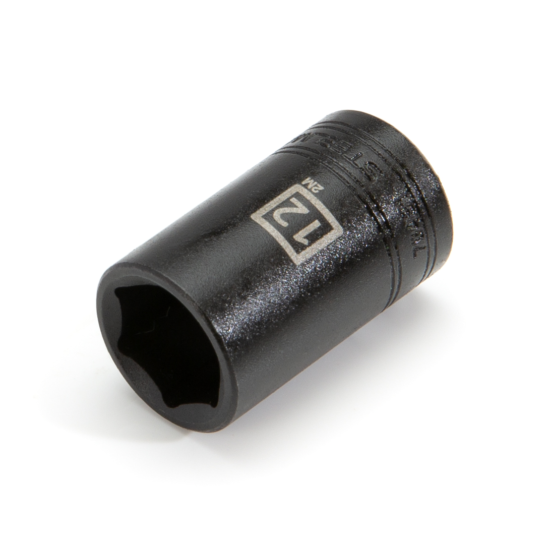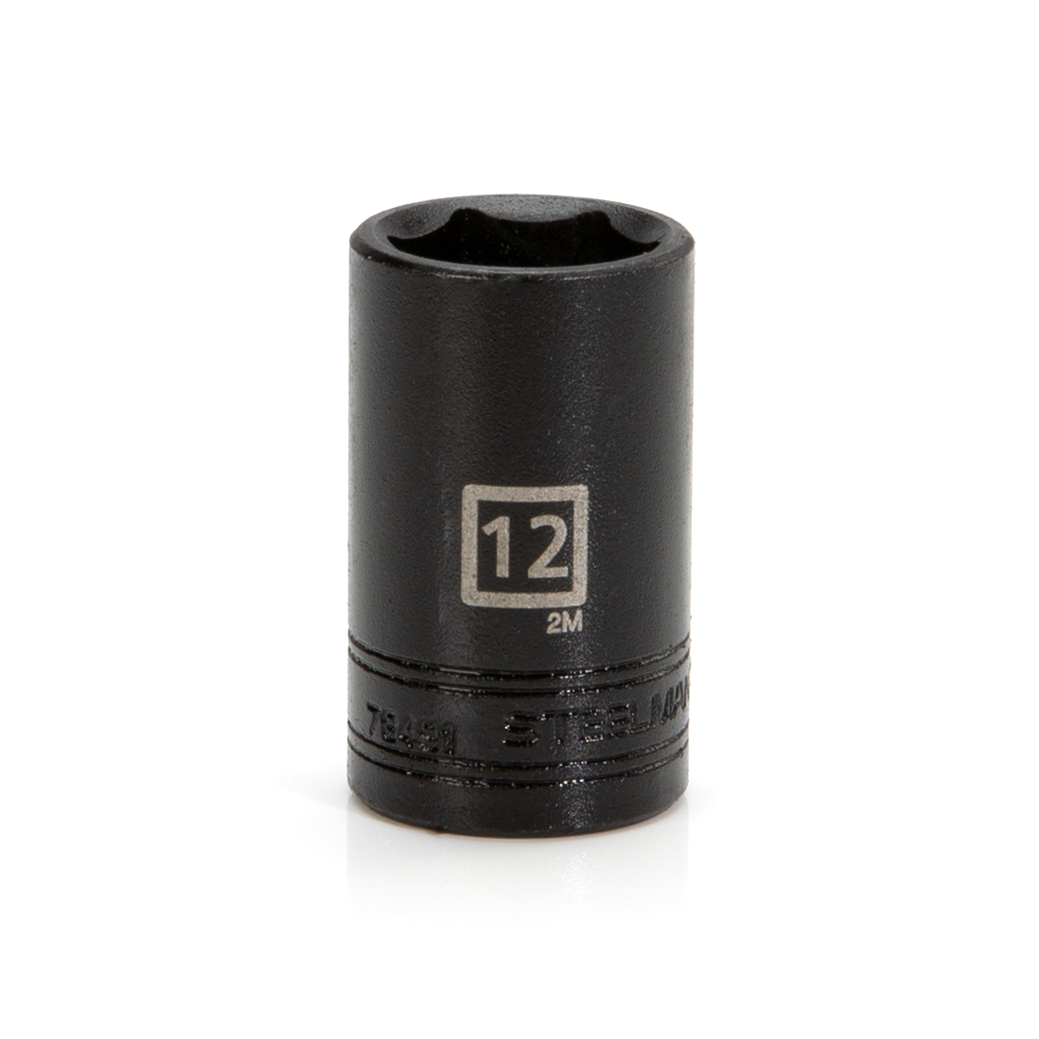 Having reliable and dependable tools can make any mechanic’s or maintenance engineer’s life easier, so be sure to find a home in your tool box for the STEELMAN PRO 78491 3/8-Inch Drive x 12mm 6-Point Impact Metric Socket. Constructed of durable and heavy-duty chrome vanadium steel, this socket has the strength required for high torque jobs and will fit onto any 3/8-inch drive electric or pneumatic impact wrench, ratchet, torque wrench, extension bar, or adapter. This shallow depth socket features a rust and corrosion resistant black oxide protective finish. The socket’s 6-point design grips the sides of fasteners and not the corners, reducing wear and the chance of slippage or rounding the fastener. Easy to read size markings are laser etched onto the steel making it simple to identify the socket without the worry that the markings will wear away or rub off with use. Rated to meet or exceed ANSI / ASME performance requirements for hand tools, these can handle tough use in any professional or home shop / garage.