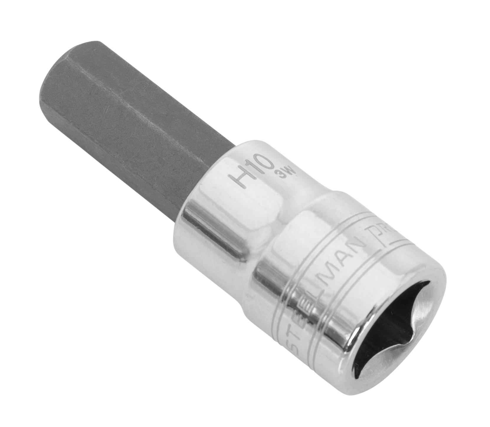 Don’t struggle with a hex key to get the job done, do it in a fraction of the time using your favorite 3/8-inch drive ratchet or an electric drill / impact driver and a STEELMAN PRO 78388 3/8-Inch Drive x 10mm Metric Hex Bit socket. With a hex bit machined from high-strength S2 steel to prevent twisting and deformation under high loads set into a durable chrome vanadium steel socket, this tool accessory is designed for long-term service. For easy identification, the socket has easy to read size markings permanently laser etched into the steel that won’t wear or fade away. To keep it securely attached to ratchets, extension bars, and adapters, the socket feature a ball detent recess on the drive end to ensure maximum torque transfer. The drive end also has corner recesses inside it that transmit applied force from ratchets and drivers to the flat sides instead of focusing it on the corners which can lead to slippage, rounding, and premature tool failure. Designed and constructed to meet or exceed ASME tool performance standards, this tool can stand up to the rigors of any professional workshop while being just as handy in the home mechanic’s garage.
