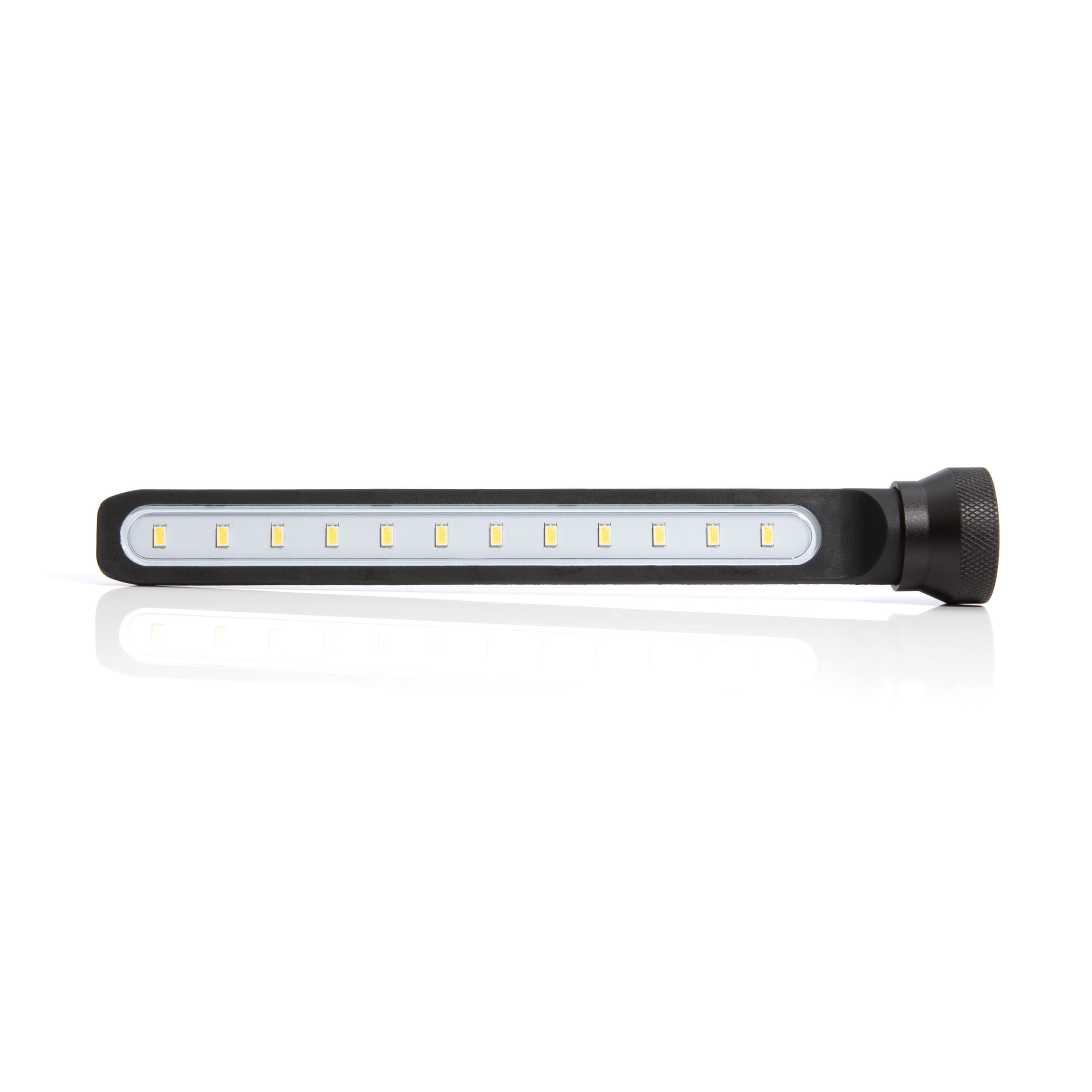 Shed light to even the tightest spaces that once had to be left in the dark with the STEELMAN PRO 78607 Slim-Lite Attachment. Its built-in LEDs are housed in a 1/4-inch thick inspection wand style housing that can be slid into all but the tightest spaces so you don’t have to work in the dark. Designed to fit onto the STEELMAN PRO model 78606 Slim-Lite as a replacement head or to the 78708 LED Flashlight as an expansion part, this ultra-slim attachment features an anodized aluminum collar along with a durable plastic polymer body and high-impact polycarbonate lens to protect the 12 integrated LEDs. The 12 SMD LED offer three brightness settings: High (400 lumens), Low (130 lumens) and Strobe. Overall measurements are 8-13/16-inches long and 1-7/8-inches wide at the attachment collar. LED Slim-Lite head only, flashlight body and batteries are sold separately.