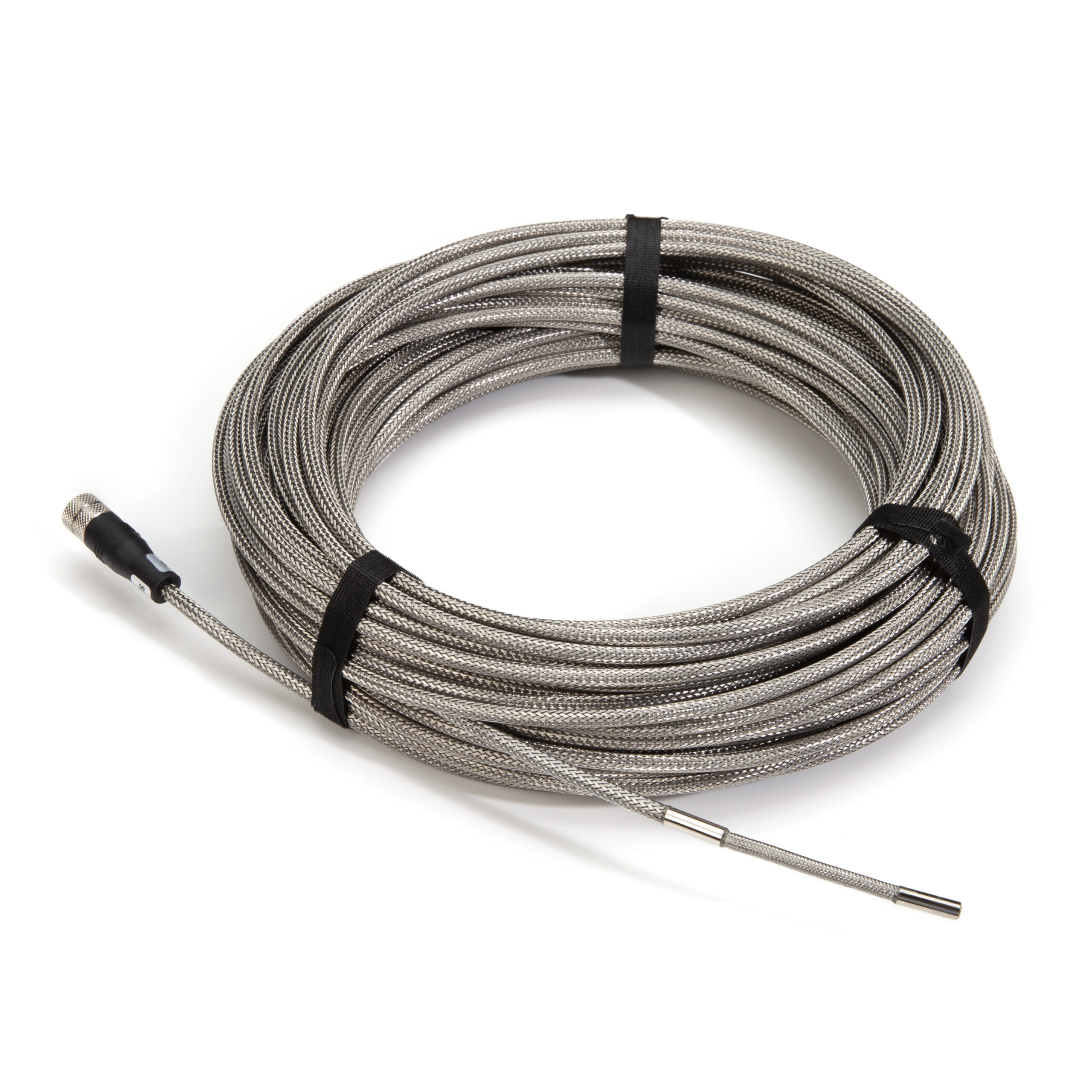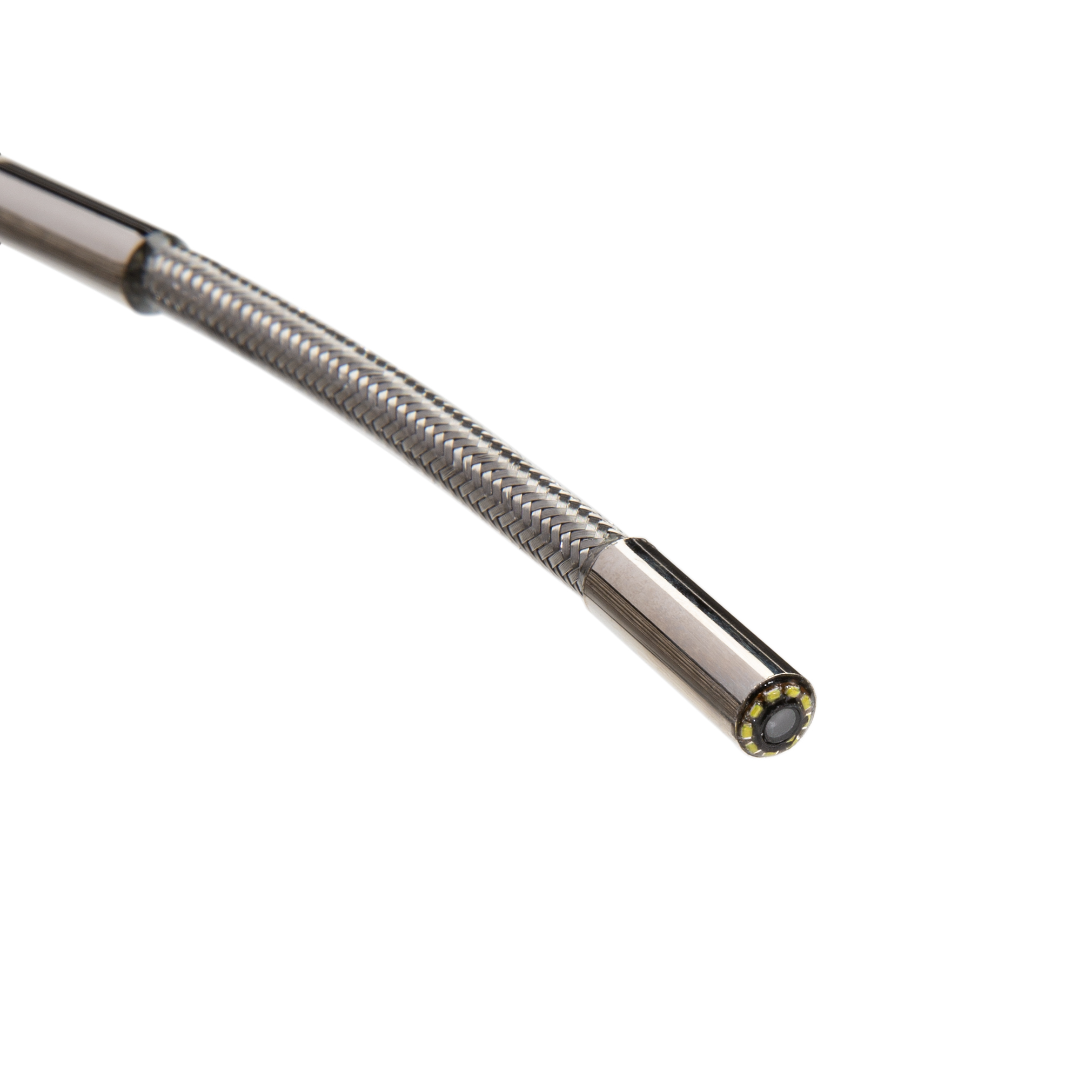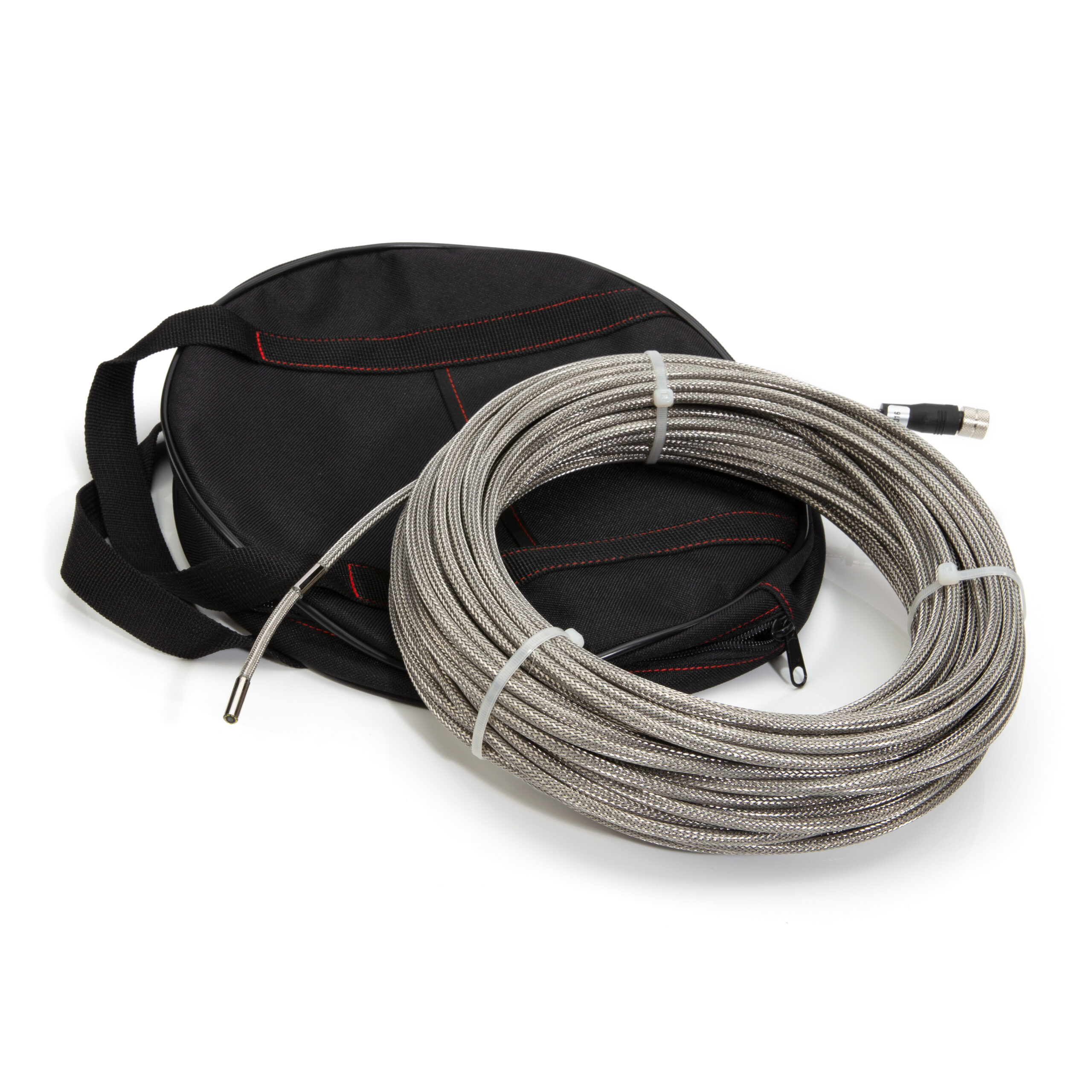 The STEELMAN PRO 60933 Replacement 5.5mm Diameter Camera Probe with 30m Long Mesh Reinforced Cable replaces a damaged camera and cable unit used by the STEELMAN 60726 Video Scope system. The tiny, 5.5mm diameter digital camera shaft is mounted to the end of a 30 meter (98-foot) long cable and allows the tip to access all but the tiniest, most restrictive spaces letting you inspect drains, vents, engines, machinery, between walls and more out to an impressive range. Built into the housing around the camera lens are 9 LED lights letting you easily illuminate the area around the shaft end with an adjustable level of brightness. The reinforcing wire mesh sheathing around the cable lets it be easily picked up via metal detectors and similar locating equipment for easy tracking of the camera’s path. The camera head is designed to withstand immersion in water at depths of up to 3-feet for up to 30 minutes at a time making it suited for most indoor and outdoor uses. Compatible with the STEELMAN 60726 7-Inch Portable Industrial Video Scope system.