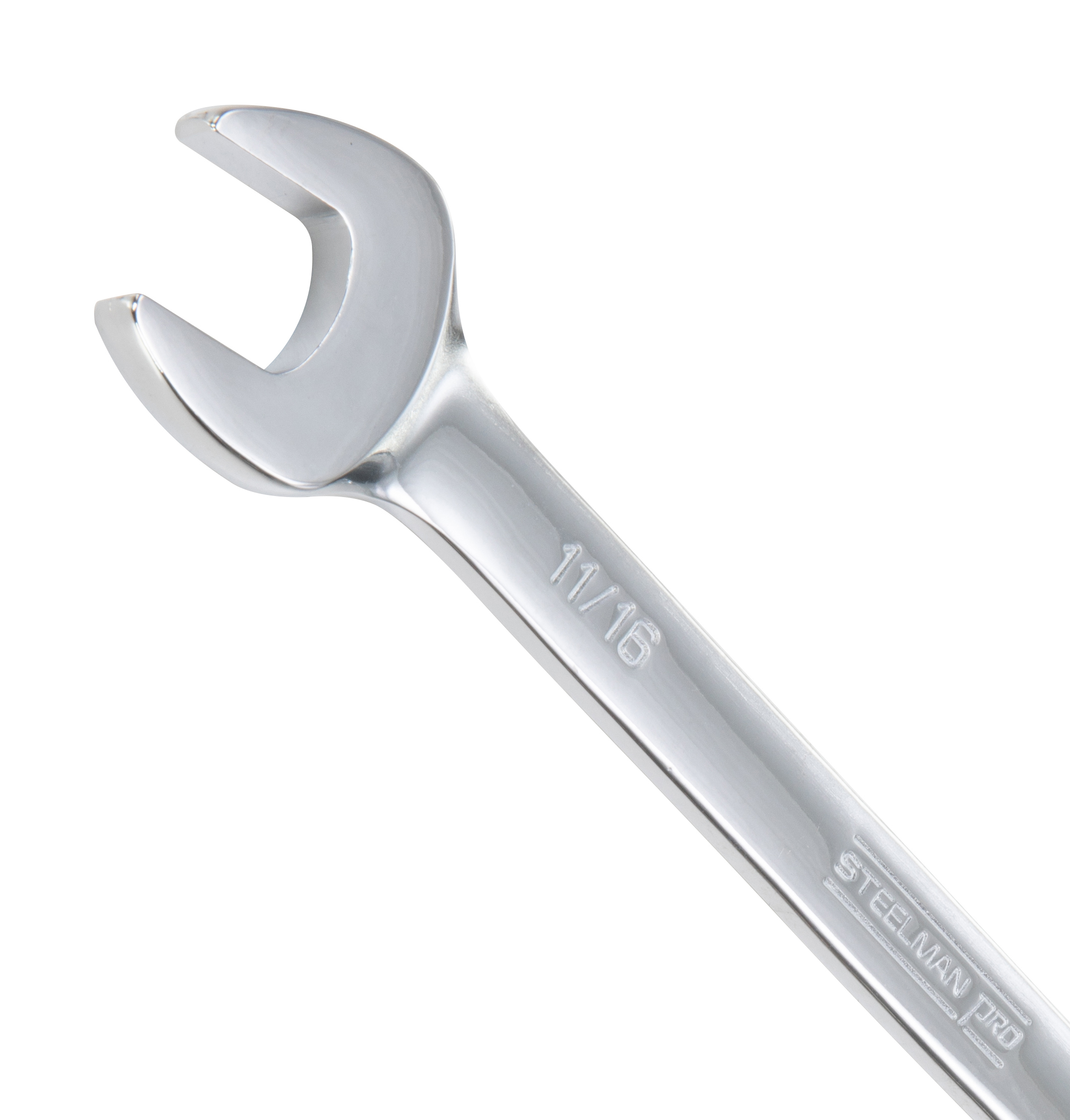 Work with the same quality tools as service technicians with the STEELMAN PRO 78356 11/16-Inch Full Polish SAE Combination Wrench with 6-Point Box End. Constructed of heat treated chrome vanadium steel alloy this tool is guaranteed to meet or exceed ASME and ANSI torque standards to give you the long lasting durability you require from your tools. Size callouts are stamped into the steel both vertically and horizontally on both sides of the wrench to make identification easy. A mirror-polish chrome plating covering provides rust and corrosion resistance and is easy to wipe clean when soiled with oil and other workshop grime. The open end on this combo wrench is angled 15-degrees to provide increased leverage and easier access to fasteners in tight places. Similarly, the box end has a 15-degree offset to provide your fingers with that little bit of extra clearance that they need as you work. The 6-point box design grips the sides of fasteners and not the corners to provide maximum torque transfer with a reduced chance of rounding off fasteners.