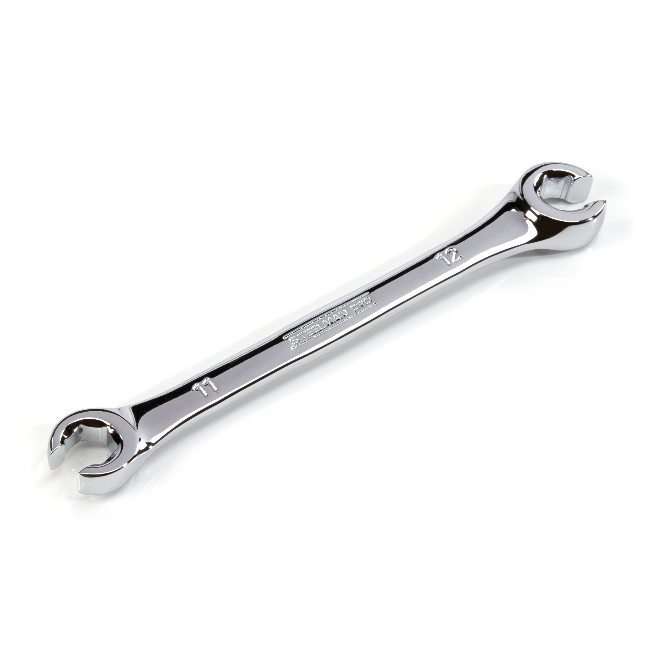 Give yourself an easier time working on automotive hose fittings and similar soft metal fasteners with a STEELMAN 78325 11mm x 12mm Double Ended 6-Point Flare Nut Wrench. Constructed of heat treated chrome vanadium alloy steel, this tool is guaranteed to meet or exceed ASME and ANSI torque standards to give you the long lasting durability you require from your tools. Size callouts are stamped into the steel on both sides of the wrench to make identification easy and the mirror-polish chrome plating provides rust and corrosion resistance that is easy to wipe clean when soiled with oil and other workshop grime. Each of the two ends is angled 16-degrees to provide easier access to fasteners as well as provide your fingers that little bit of extra clearance as you work. The 6-point style open box design of the wrench simultaneously grips multiple sides on a fastener for increased torque transfer while reducing the chance of rounding – ideal when working on hose fittings and other soft metal fasteners as well as regular nuts, bolts, and fasteners.