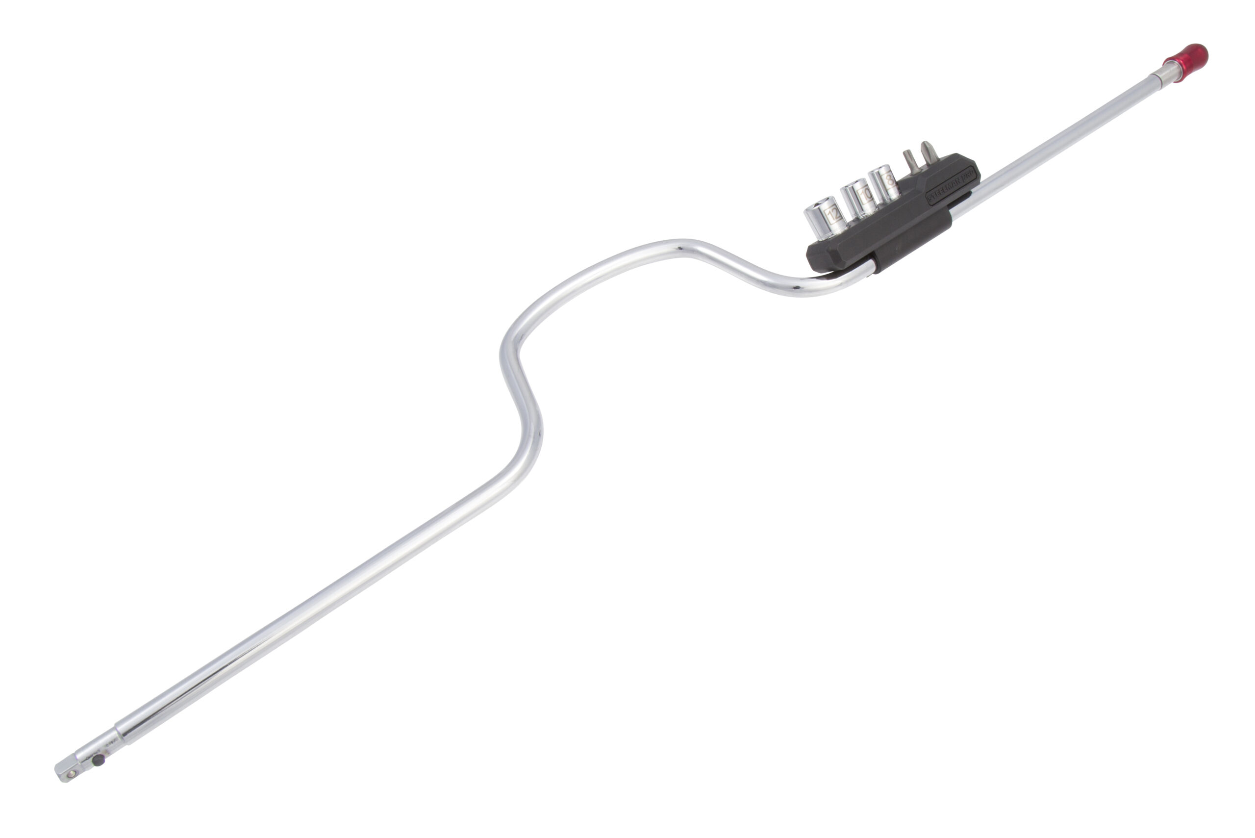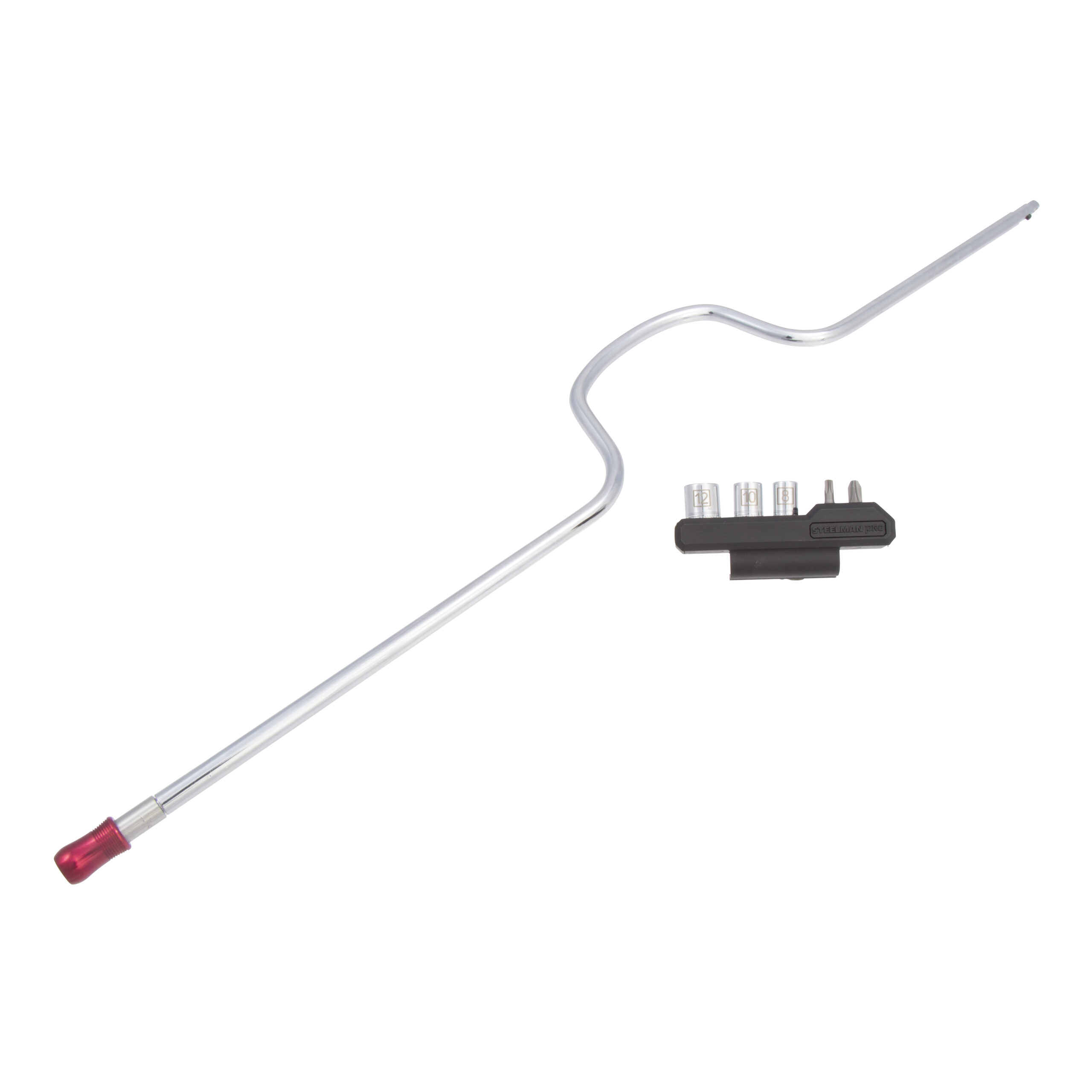 The STEELMAN PRO 78827 Engine and Cabin Air Filter Speed Wrench and Socket / Bit Set provides a quick and easy way to remove most engine and cabin air filters, all with one convenient tool. This 26-inch long speed wrench provides the reach needed to get into the tight spaces where filters are located. One end of the spinner handled wrench is fitted with a quick-release equipped 1/4-inch drive square for use with the 3 included sockets or with any 1/4-inch drive socket, extension, or adapter. The other end of the speed wrench features a quick-release adapter for use with any 1/4-inch hex bit, from the included 2 or any others needed for specific jobs. Set comes with T25 and PH3 tip 1/4-inch hex bits as well as an 8mm, 10mm, and 12mm 6-point 1/4-inch drive sockets which can be stored on the included plastic storage clip where they will always be within easy reach for quick access. Pros know that time is money, let the STEELMAN PRO Engine and Cabin Air Filter Speed Wrench save you some.