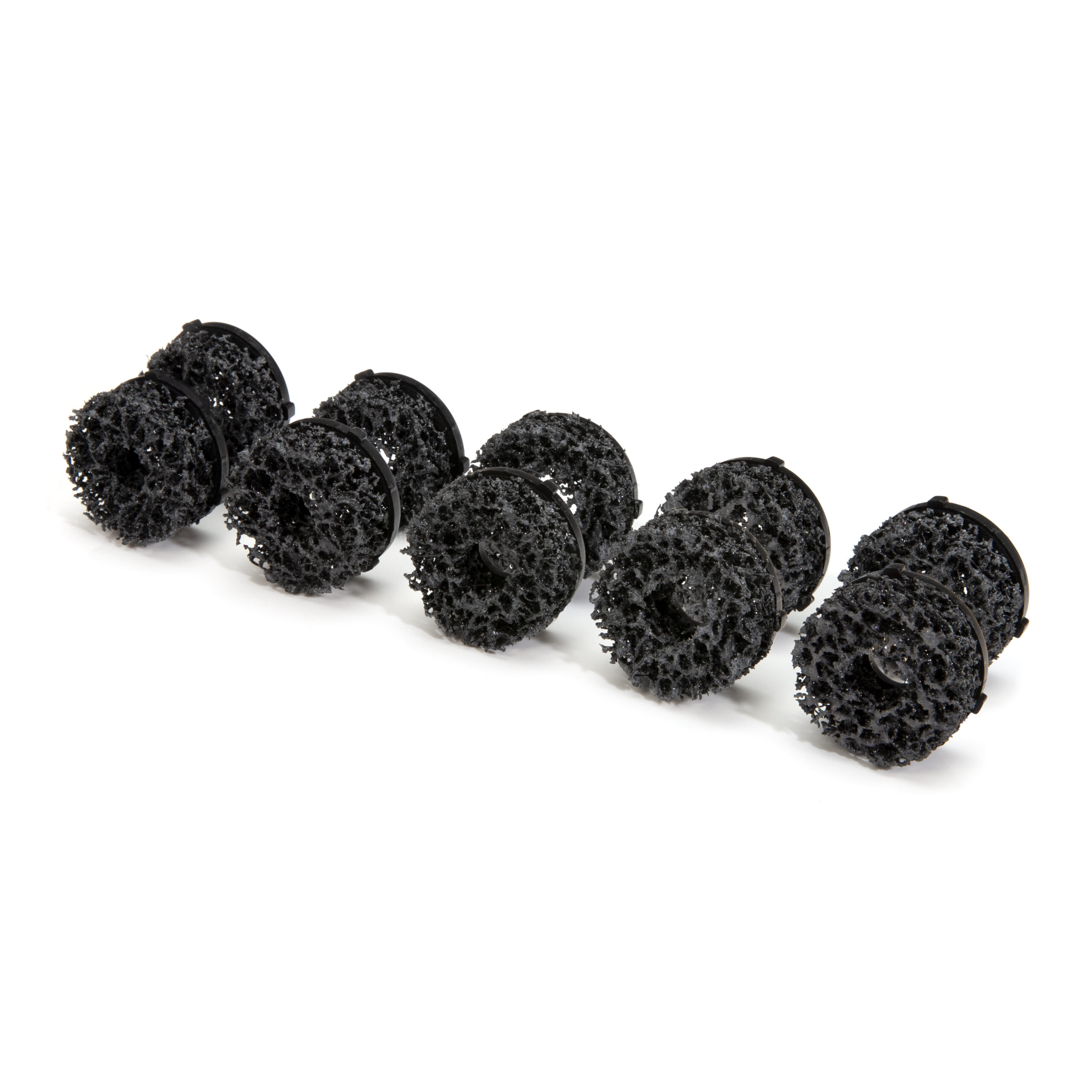 With the STEELMAN 99905-03-10PK Replacement Small 1.5-Inch Diameter Wheel Stud, Hub, and Rotor Cleaning and Polishing Pad 10-Pack you can keep your wheel hub cleaning kit stocked and ready for use on any vehicle. These replacement pads are ideal for keeping rust from building up on hubs, rotors, and brake drums. When allowed to build up, rust on these parts can lead to wobbling due to improper alignment, uneven brake wear and rotor runout, and rusted lug nuts that can lead to improperly secured tires that check as torqued but are still loose on the wheel. These pads feature a durable nylon web to scour away rust and built-up road grime without damaging steel rotors, hub assemblies, and brake components like a wire brush or wheel and without the hazards of chemical cleaners. Each pad has a hook and loop backing that holds them tightly to the drill / low speed buffer adapter while still allowing easy removal and replacement when worn. Pack contains ten (10) replacement 2-inch diameter pads for use with the STEELMAN 99905 Wheel Hub and Rotor Polishing Kit.