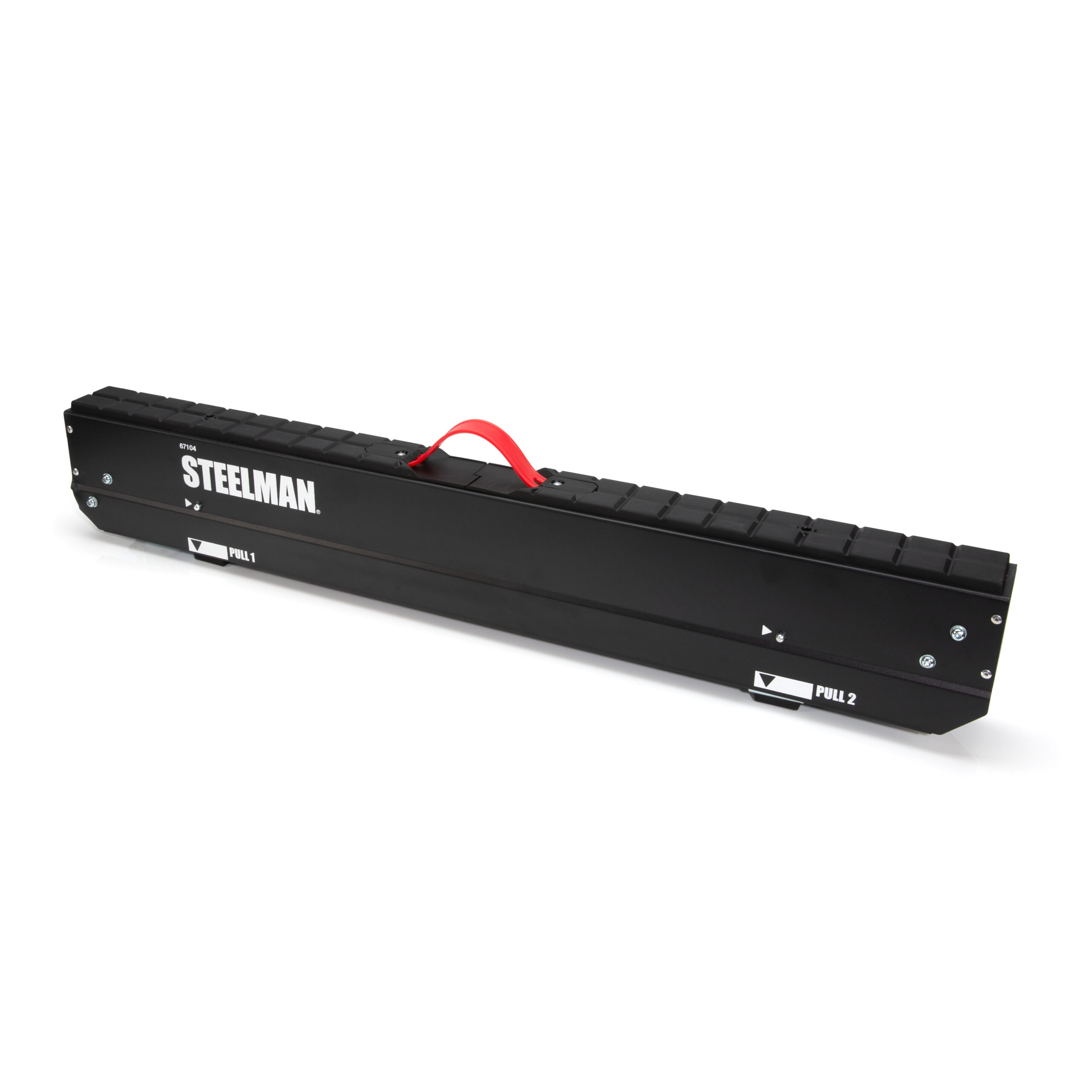 Whether you need to hold up a quick weekend project in the garage or need a way to put together a sturdy work table* for that new construction project that will occupy your next few weeks, the STEELMAN 67104 Single Height Adjustable Folding Multi-Purpose Sawhorse will give you the support you need to get the job done. Constructed of high-grade, corrosion-resistant steel, this sawhorse features a remarkable support capacity, able to hold up to 1,300-pounds of distributed weight. Each leg is independently adjustable with 8 different 1-inch height increments that can help to compensate for uneven ground. A 2 x 4 support arm on each end allows the easy creation of a job site table, workbench, scaffolding support, or any other useful rack system you might need when used with a second sawhorse. The galvanized legs fold away for easy storage, and the built-in handle makes transporting the sawhorse a breeze. When fully deployed, the sawhorse measures 42-inches wide x 32-inches high. Compatible with the STEELMAN 92783 Non-Marring Feet to protect floors when used indoors and on delicate surfaces. *Second sawhorse required to be able to construct a worktable.