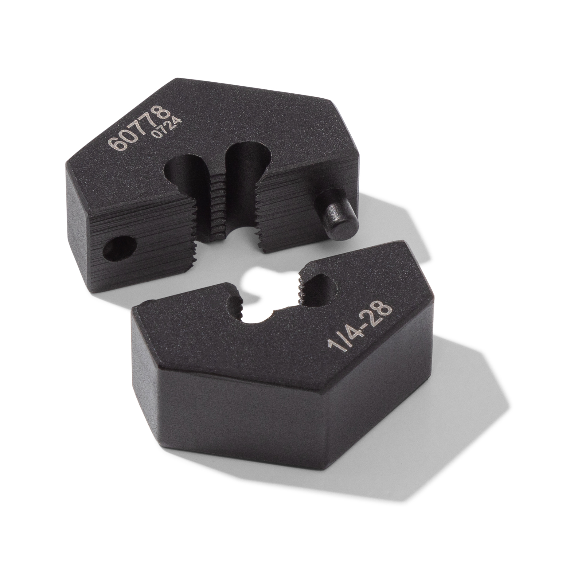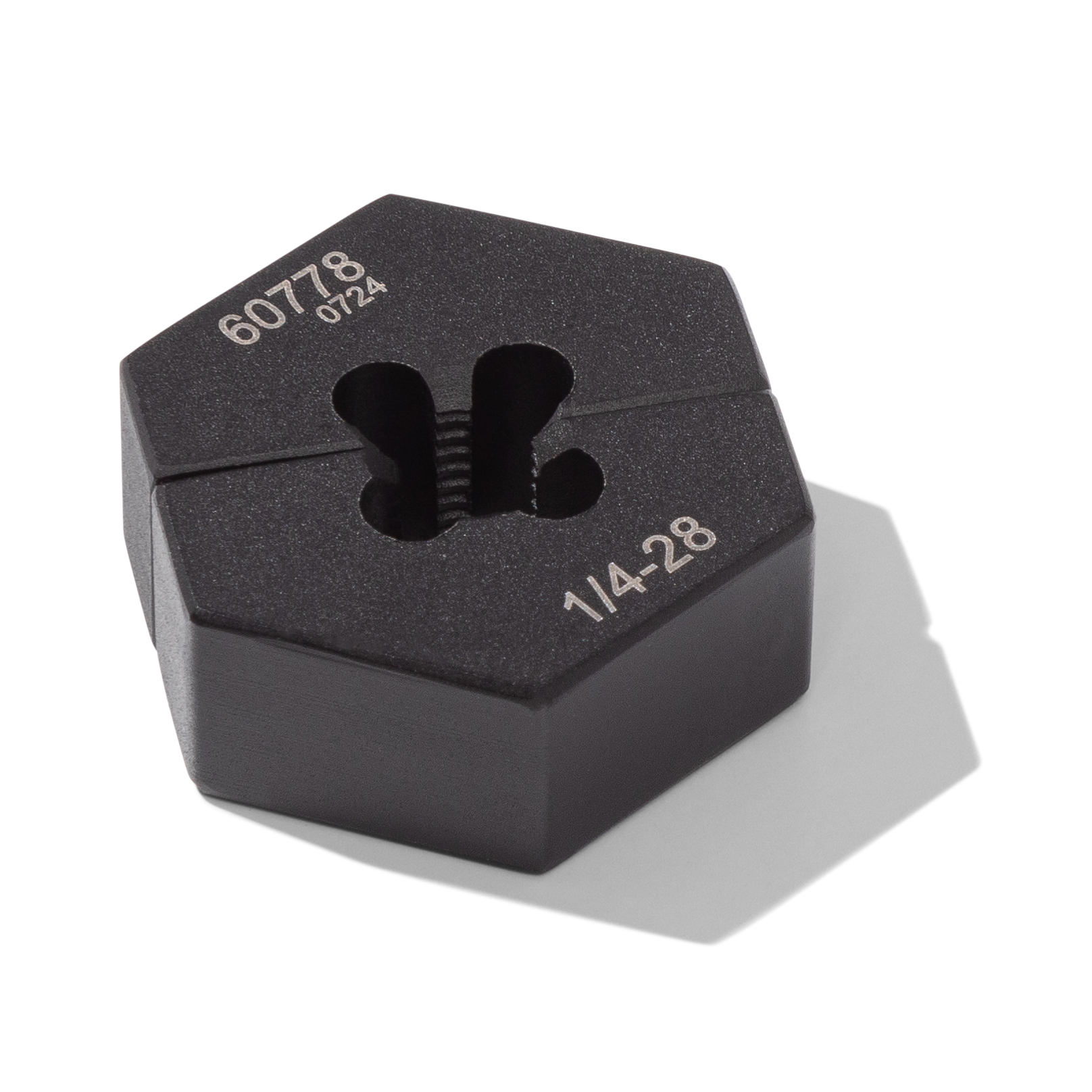 Having to repair damaged bolt threads can be aggravating to start with but when the die ends up cross threading the bolt it can lead to lost time and more costly repairs. The STEELMAN 60778 1/4-28 SAE Split Die Thread Chaser is designed to remove the worry of cross threading by allowing repairs to begin behind damaged threads. By starting the repair on undamaged threads you can ensure a continuous repair that is perfectly aligned with the original threads. Made of hardened high carbon and chromium steel, this tool features dual indexing pins that ensure correct tooth alignment and hold the tool straight and secure during use. With an outer diameter of 1-inch, this hex shaped thread repair tool can be used with any 1-inch SAE socket, adjustable wrench, or combination wrench. Designed to meet or exceed 150% of ASME torque requirements, this tool will last for years of reliable use in any professional or home garage / workshop. WARNING: To prevent damage to bolt threads, only use dies with hand-driven tools. Using dies with air, electric, or hydraulic power tools will void warranty.