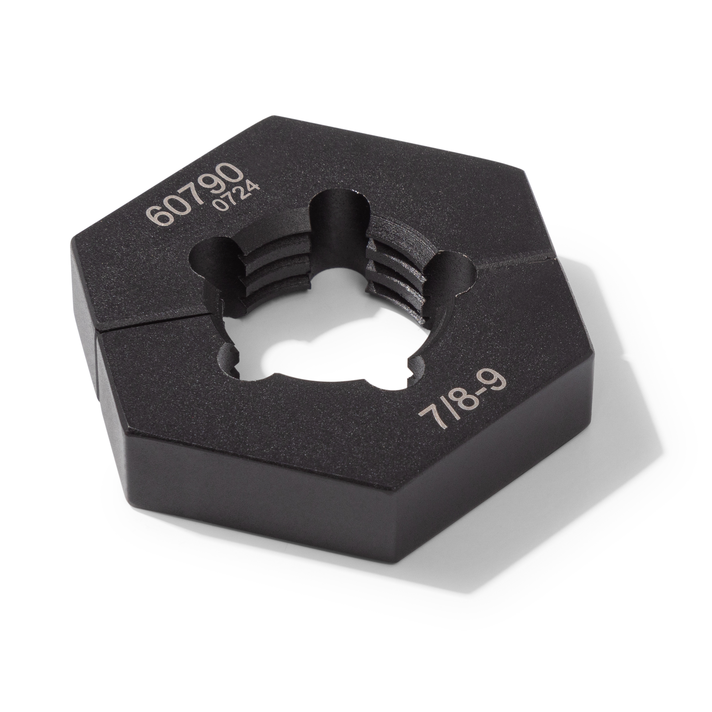 Having to repair damaged bolt threads can be aggravating to start with but when the die ends up cross threading the bolt it can lead to lost time and more costly repairs. The STEELMAN 60790 7/8-9 SAE Split Die Thread Chaser is designed to remove the worry of cross threading by allowing repairs to begin behind damaged threads. By starting the repair on undamaged threads you can ensure a continuous repair that is perfectly aligned with the original threads. Made of hardened high carbon and chromium steel, this tool features dual indexing pins that ensure correct tooth alignment and hold the tool straight and secure during use. With an outer diameter of 1-3/4-inch, this hex shaped thread repair tool can be used with any 1-3/4-inch SAE socket, adjustable wrench, or combination wrench. Designed to meet or exceed 150% of ASME torque requirements, this tool will last for years of reliable use in any professional or home garage / workshop. WARNING: To prevent damage to bolt threads, only use dies with hand-driven tools. Using dies with air, electric, or hydraulic power tools will void warranty.