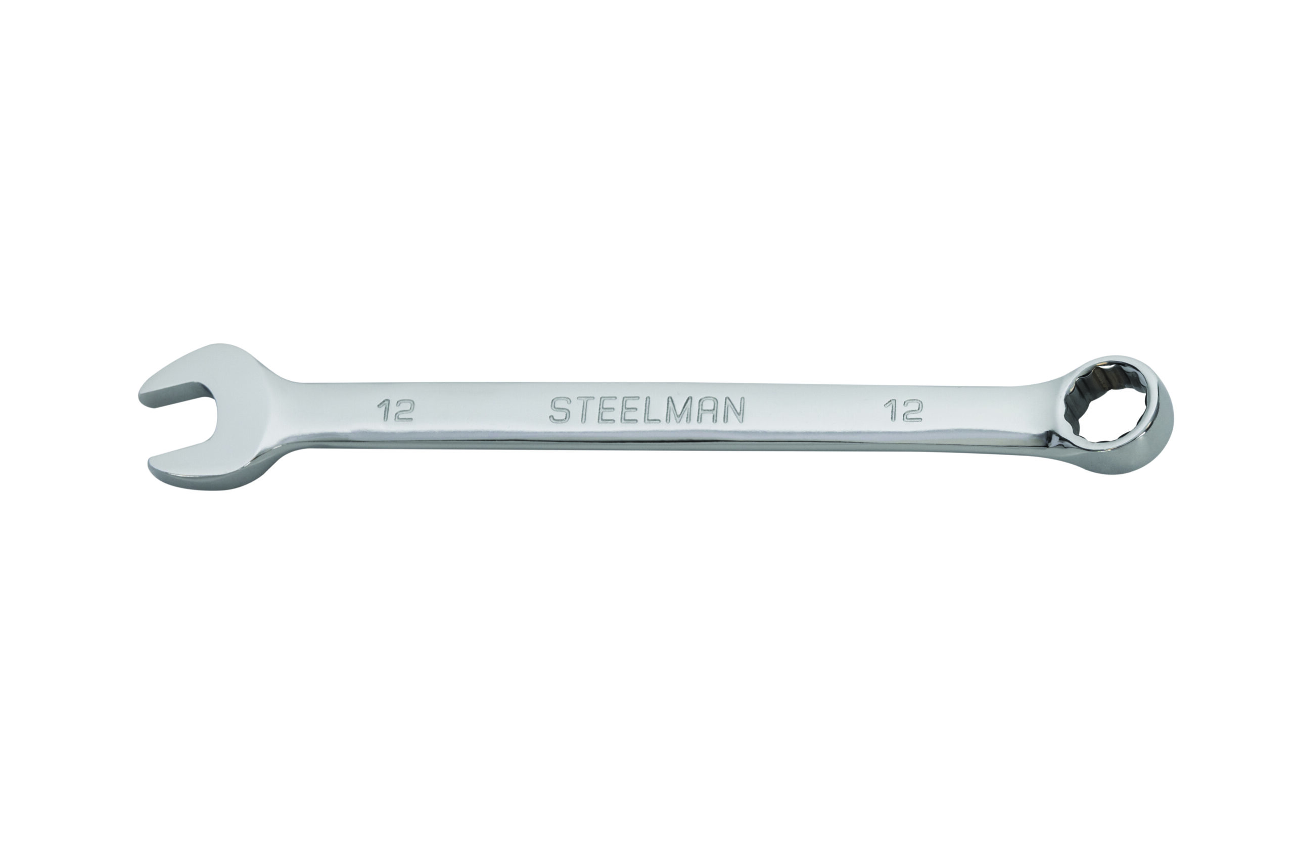 Work with the same quality tools as professional mechanics and service technicians with a STEELMAN 82565 12mm Metric Combination Wrench with 12-Point Box End. This durable alloy steel tool is designed to allow you to remove and tighten multiple kinds of fasteners without needing additional tools. The 12-point box end can be used to work on 12-point, traditional 6-point, and even 4-point nuts, bolts, and other fasteners. The tool’s angled open end makes it easier to use on fasteners in small spaces that restrict access by letting you flip the wrench around and access the fastener from a new angle. The offset box end provides extra clearance to get past obstructions as well as make room for your hands and knuckles as you work. Multiple size markings on the wrench are hard stamped directly into the steel on both sides for easy identification doesn’t wear away or rub off with repeated tool use. The easy to clean, full polished chrome finish protects against rust and corrosion to further prolong tool life.