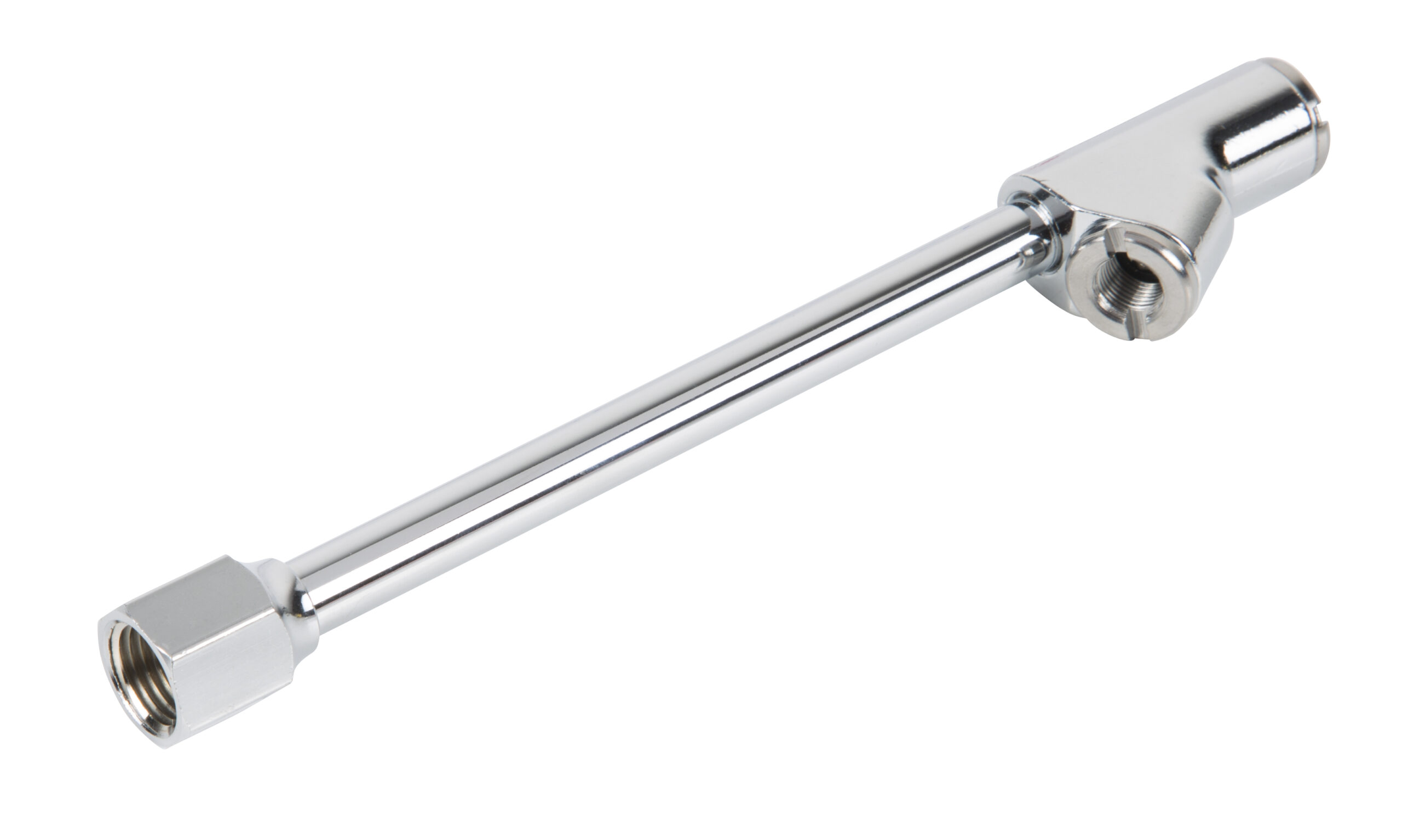 Built for lasting durability, the STEELMAN 60131 Straight-On and 30-Degree Reverse Angle Closed Style 7-Inch Long 1/4-Inch FPT Chrome Air Chuck will always be ready for heavy-duty use. Made with a durable chrome-plated brass body tube and rust resistant zinc alloy head, this 7-inch long inflation tool has a double connector design that allows it to easily access standard valve stems as well as recessed and reversed stems on inner rear tires on dualie / dual rear wheel type trucks and vehicles. The closed style chuck seals the air passage when it’s not in use making it ideal for use on non-gauged tire inflators. The connection end is threaded 1/4-inch female NPT to easily fit male 1/4-inch NPT hose fittings and plugs. Perfect for commercial workshops and professional automotive mechanic use as well as in home garages.
