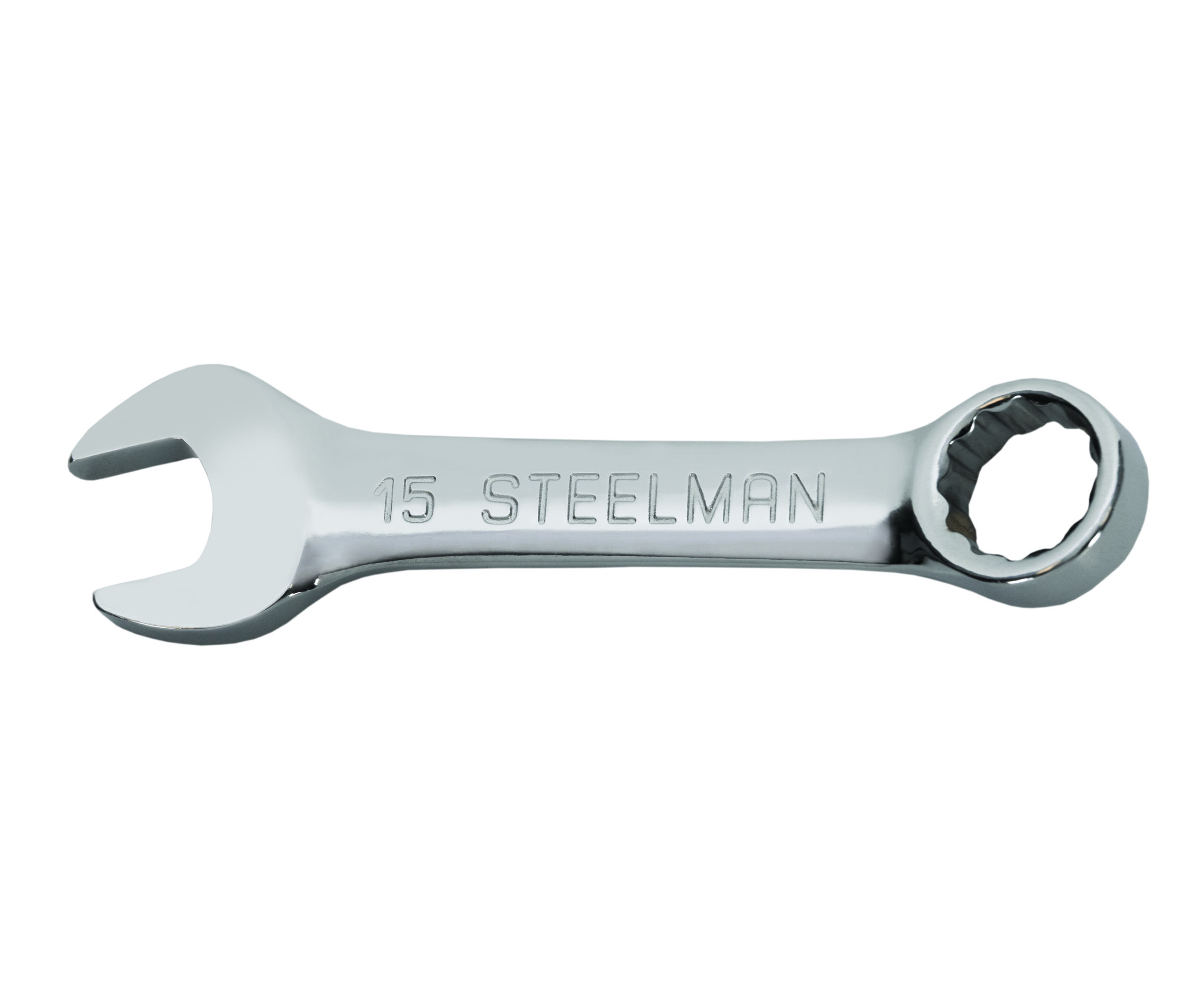 Work with the same quality tools as professional mechanics and service technicians with a STEELMAN 82593 15mm Stubby Size 12-Point Metric Combination Wrench. This durable alloy steel tool is designed to allow you to remove and tighten multiple kinds of fasteners without needing additional tools. The 12-point box end can be used to work on 12-point, traditional 6-point, and even 4-point nuts, bolts, and other fasteners. The compact size of this stubby wrench allows it to be used in tight spaces that are too restrictive for full size tools to be used. The tool’s angled open end makes it easier to use on fasteners in small spaces that restrict access by letting you flip the wrench around and access the fastener from a new angle. The offset box end provides extra clearance to get past obstructions as well as make room for your hands and knuckles as you work. Multiple size markings on the wrench are hard stamped directly into the steel on both sides for easy identification doesn’t wear away or rub off with repeated tool use. The easy to clean, full polished chrome finish protects against rust and corrosion to further prolong tool life.