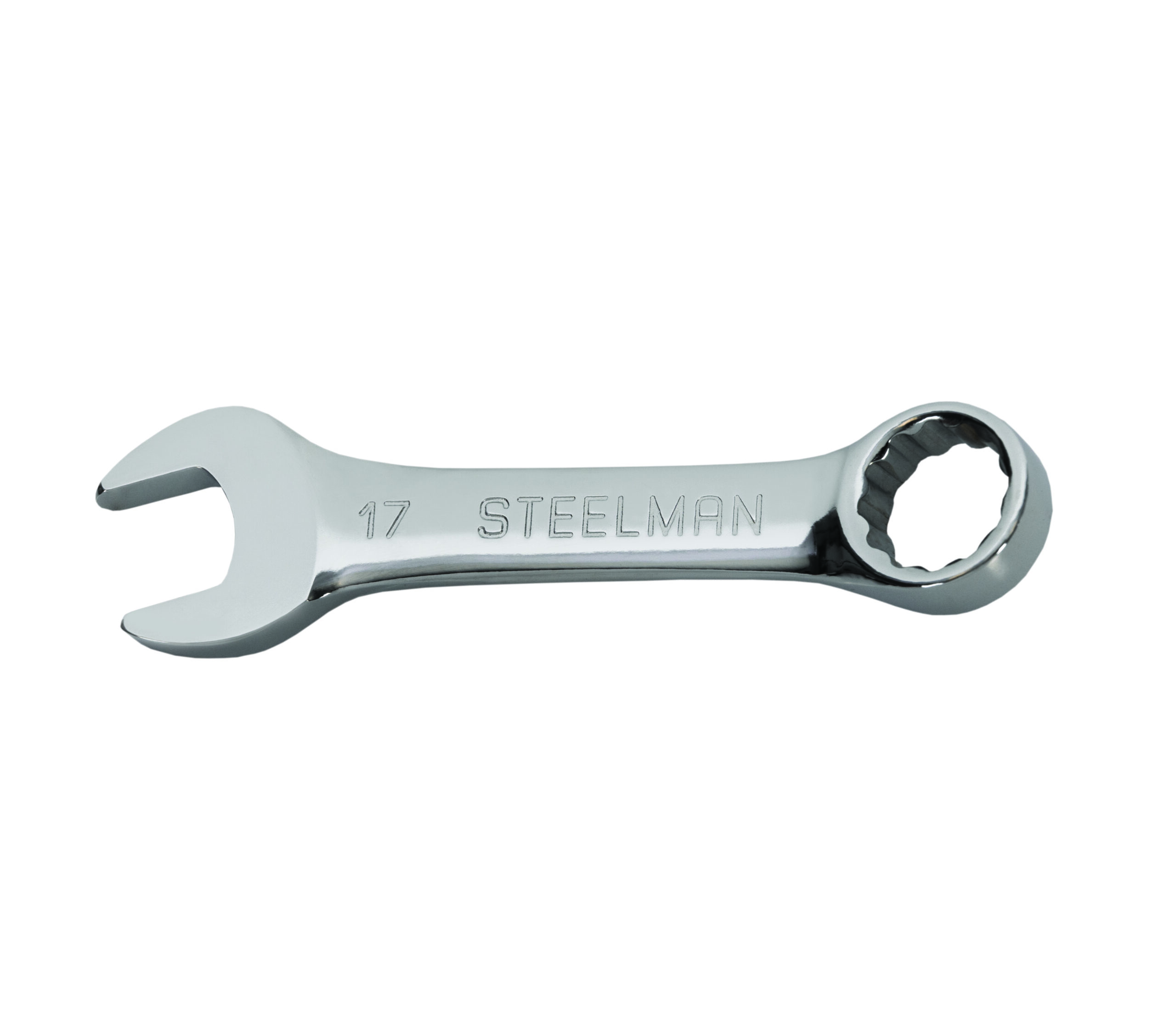 Work with the same quality tools as professional mechanics and service technicians with a STEELMAN 82595 17mm Stubby Size 12-Point Metric Combination Wrench. This durable alloy steel tool is designed to allow you to remove and tighten multiple kinds of fasteners without needing additional tools. The 12-point box end can be used to work on 12-point, traditional 6-point, and even 4-point nuts, bolts, and other fasteners. The compact size of this stubby wrench allows it to be used in tight spaces that are too restrictive for full size tools to be used. The tool’s angled open end makes it easier to use on fasteners in small spaces that restrict access by letting you flip the wrench around and access the fastener from a new angle. The offset box end provides extra clearance to get past obstructions as well as make room for your hands and knuckles as you work. Multiple size markings on the wrench are hard stamped directly into the steel on both sides for easy identification doesn’t wear away or rub off with repeated tool use. The easy to clean, full polished chrome finish protects against rust and corrosion to further prolong tool life.