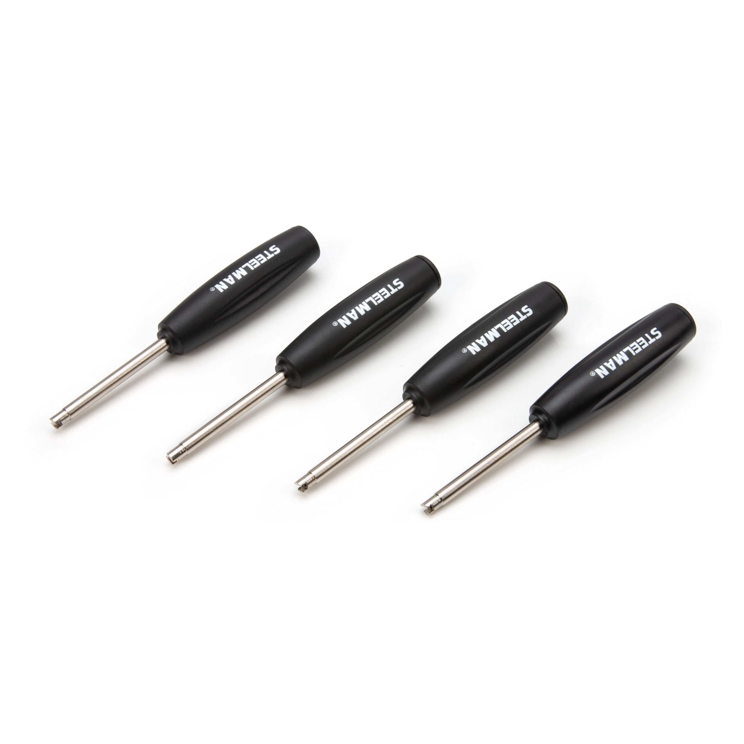 Easily install and properly torque TR C1 and similar valve cores in Schrader style valve stems with the STEELMAN 96129-4PK Valve Core Torque Tool 4-Pack. This pack of 4 handy, pocket screwdriver sized tools fit all standard bore sized valve cores on tubed and tubeless tire systems on cars, trucks, motorcycles, bicycles, and more. Save money lost to flat tires and poor gas mileage caused by underinflated tires due to leaky or loose valve cores. The contoured, screwdriver style handles fit comfortably into your hand but are small enough to fit into most pockets, mountain bike / road cycling kit, or automotive emergency tool kit. Internal ratcheting mechanism automatically disengages when valve core torque hits the optimum recommended 4.0 in-lb. Ideal for proper installation on TPMS standard and aluminum valve stems. The Original Equipment Manufacturers (OEM) requires that the valve stem components and EPDM rubber seals are replaced every time a tire is serviced on vehicles with TPMS, making this an essential tool for anyone who does their own tire servicing!