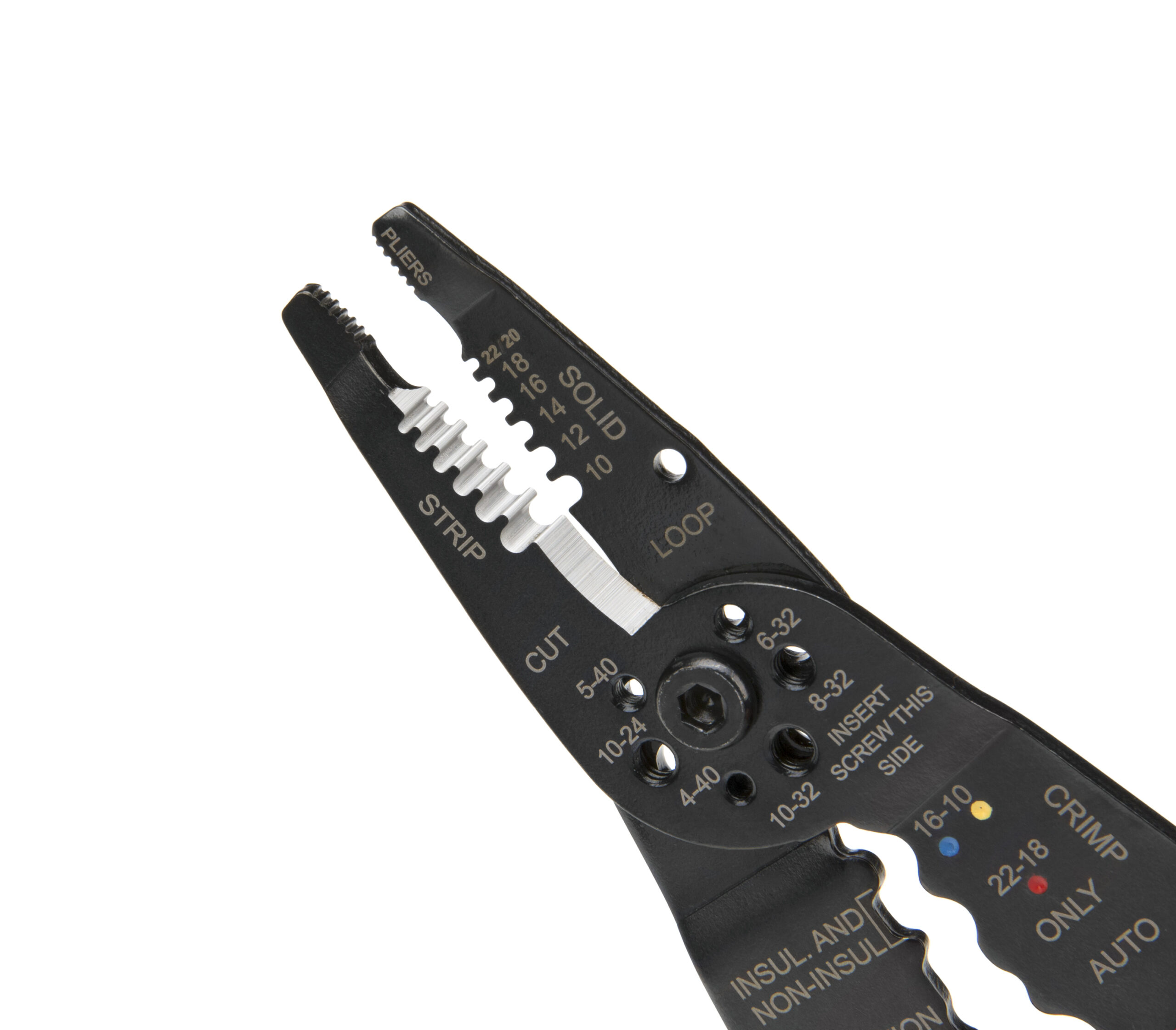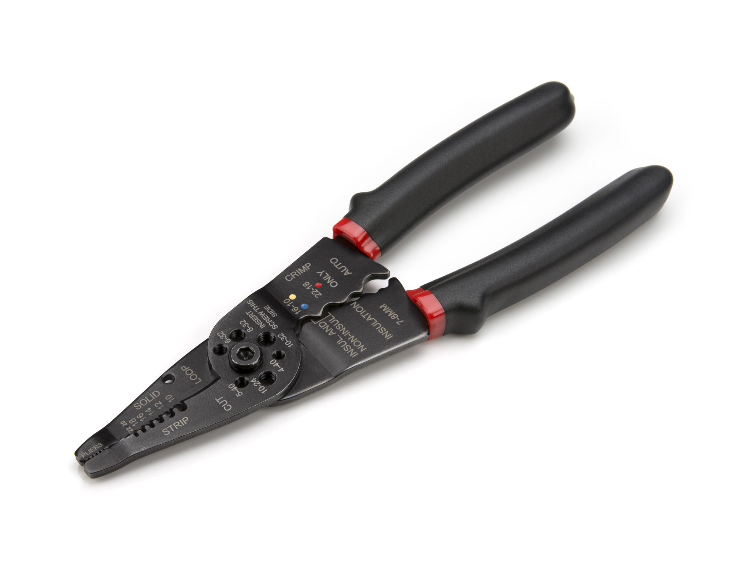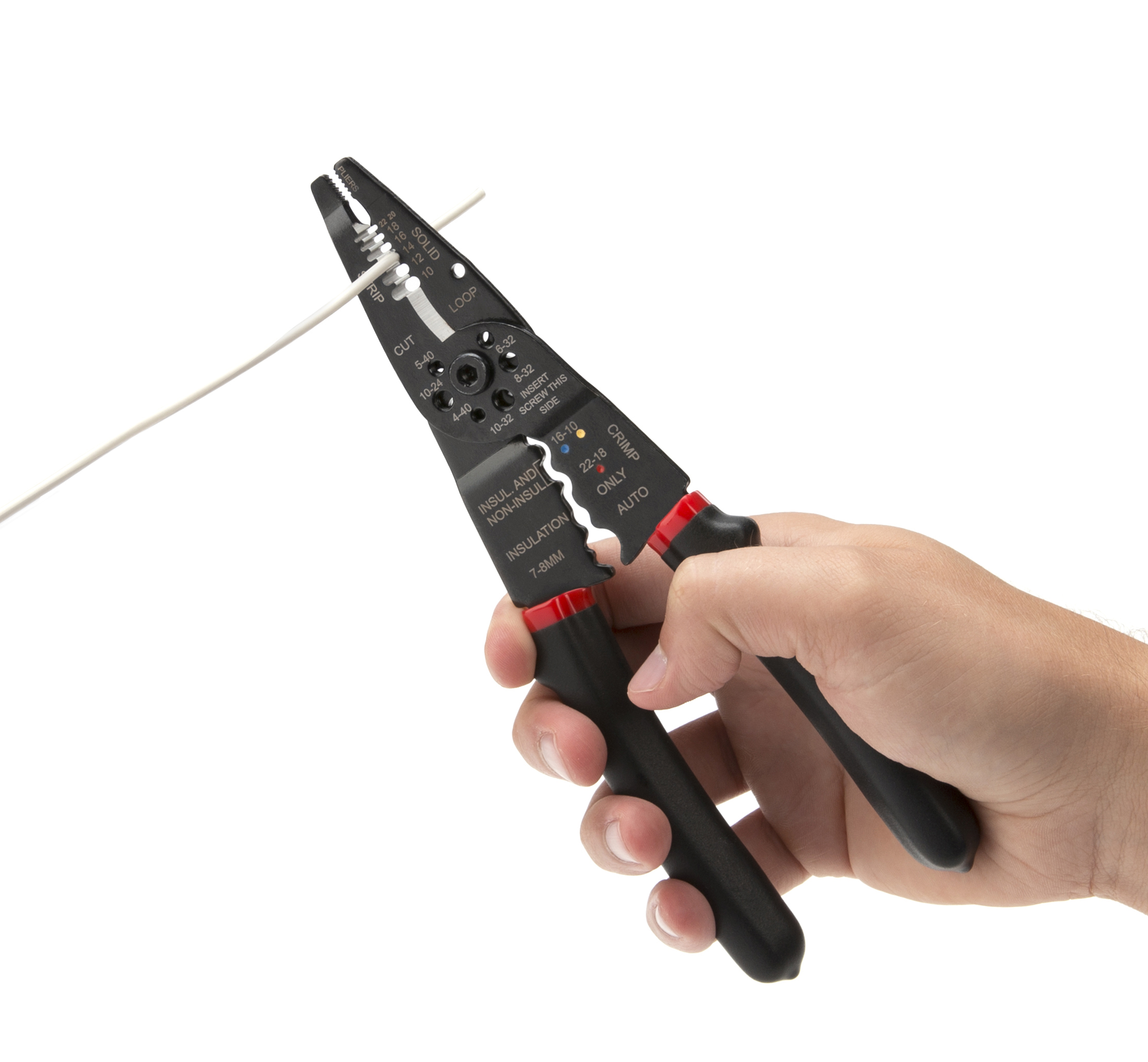 Whether you’re stripping wire to install outlets and lights or just need to replace some damaged automotive wiring the STEELMAN 41874 Universal Wire Stripper / Cutter / Crimper is the tool that can help you get the job done. Made from durable steel with comfortable PVC dipped and textured handles it cuts, crimps, and strips equally well on both solid and stranded copper electrical wires. Handle ridges provide additional This conveniently sized, 8-inch wire stripper can remove insulation from 22 to 10 AWG (0.65 to 2.6mm) electrical wires and the crimper can handle 22 to 10 AWG insulated and non-insulated wire. The built-in screw shearer is capable of leaving clean, burr-free cuts on screws sized 5-40, 10-24, 4-40, 6-32, 8-32, and 10-32. The pliers style nose gives you the grip you need to pull, twist, bend, pinch, and hold wires and the looping hole allows you to quickly bend hooks into wires for attaching to terminals. You don’t need to be a lineman or electrician to have access to quality hand tools, look no further than STEELMAN.