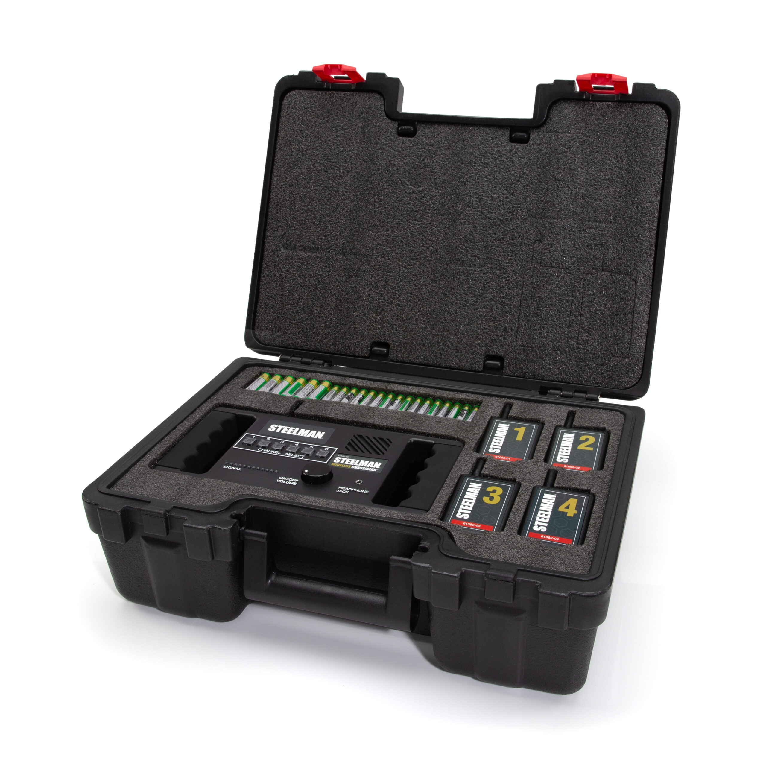 The STEELMAN 61082 Wireless ChassisEAR is a unique diagnostic device specifically designed to pinpoint squeaks, rattles, and any other troublesome and errant noises across a vehicle’s engine, axles, and chassis. Ideal for diagnosing faulty fuel injectors, bearings, gears, suspensions, transmissions, differentials and CV joints, and under hoods. Working as a high powered wireless stethoscope for your car or truck, each of the 4 independent transmitters can be placed in a separate location around the vehicle using the built-in clips or the included nylon hook-and-loop straps. These then transmit to the receiver allowing you to listen to the vehicle during standard operation to hear noises that are difficult or just impossible to duplicate in a repair stall. Each transmitter is assigned its own channel on the receiver and can be selected or muted individually to make pinpointing the location and cause of a noise easy. With a 50-foot transmitter to receiver range it is useable on all makes and models of cars and light trucks, as well as a variety of larger vehicles. Kit includes 4 transmitters, 1 receiver unit, 1 set of mini earphones, 4 cable-leads/microphone clamps, 12 nylon straps, 12 hook-and-loop straps, 6 AA batteries, 16 AAA batteries, an organizer pouch, location identifier note pad, instruction manual, and a blow-molded storage case. *Since they operate on different frequencies, the 61082 series transmitters and receiver are not compatible with previous 60635 and 97202 versions.*