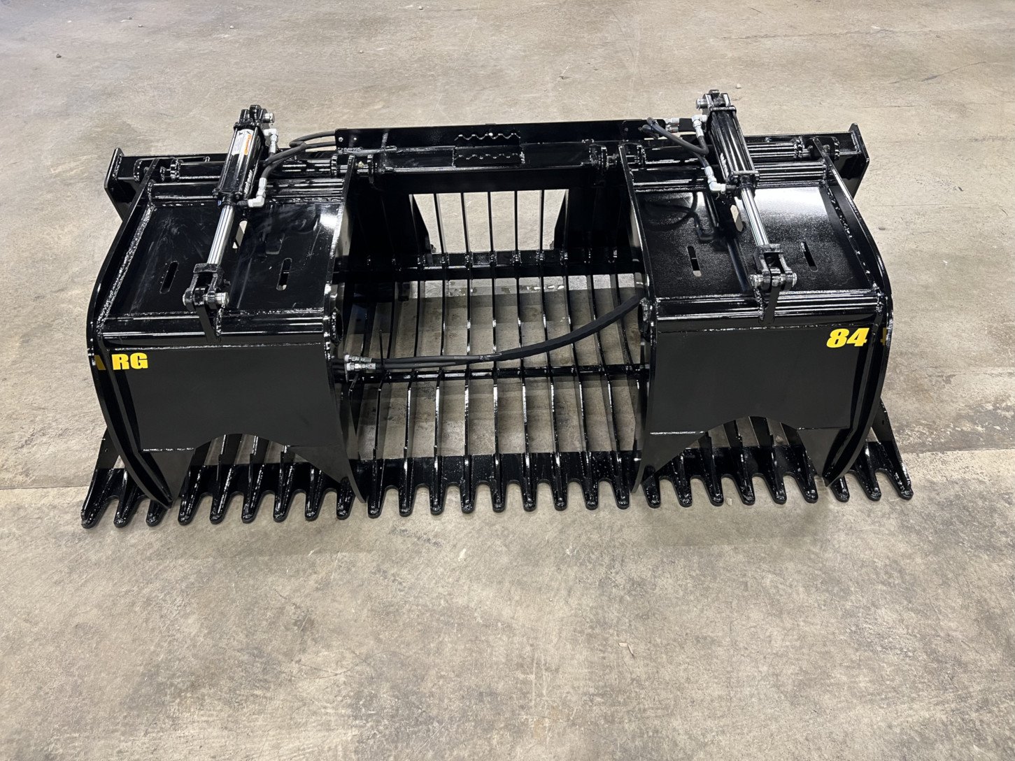 Our tractor rock grapple consists of a large bucket with perfectly spaced tines for scooping and dual grapples for holding tight. This hauling combo allows dirt to fall through while the grapples retain bulky materials, including large rocks, logs and brush.